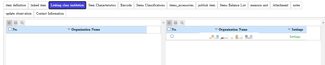 Where each item is linked to the establishment or the branch inside the establishment until the item appears to users in the added organization and to use the item in purchasing, sales, and warehouse operations