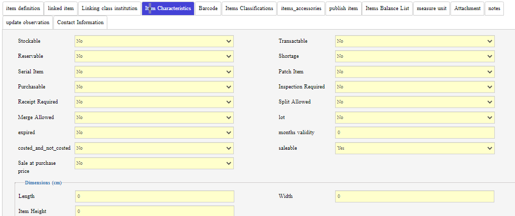 The main settings are added to help the user to create the barcode for the item when adding it