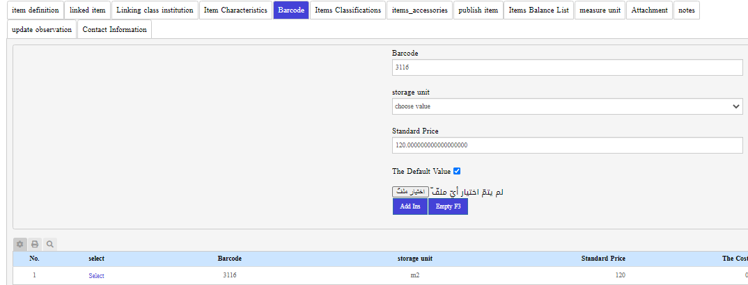 Adding the items is considered the second step after preparing the stores, where the items are added in the establishment according to the archive sections that have been added previously, then to select the units, prices, storage unit and the default unit, and choose the product locally manufactured or finished